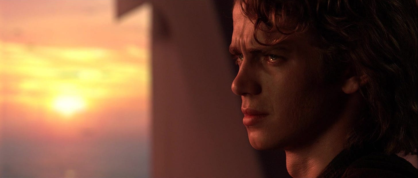 In Revenge of the Sith, Anakin Skywalker watches the sun set over the Coruscant skyline while ruminating on the possible death of his wife, Padmé. Because the Jedi will not act to save Padmé from Anakin’s premonitions of her death, he decides to defy the instructions of Jedi Master Mace Windu and take matters into his own hands. He leaves in a ship to save Padmé’s life by learning the secrets of the dark side in partnership with Palpatine, abandoning his Jedi ideals in the process.