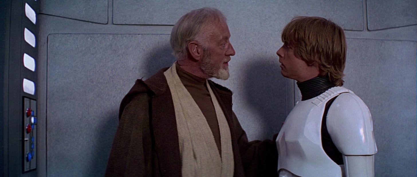 In A New Hope, Obi-Wan Kenobi separates from his pupil Luke Skywalker while they are trying to escape the Death Star. Luke wants to go with his teacher, but Obi-Wan gently detaches himself, saying, “Your destiny lies along a different path from mine.”