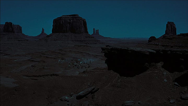 The most extraordinary connection you made is between The Searchers and Attack of the Clones. I do not remember that shot of Ethan on the bluff overlooking the camp like Anakin. The major reason I picked that shot for my post on Anakin's rage-fueled slaughter was because (superficially) I thought the moons in the background looked cool. Now that shot feels like a "happy accident." Thank you.