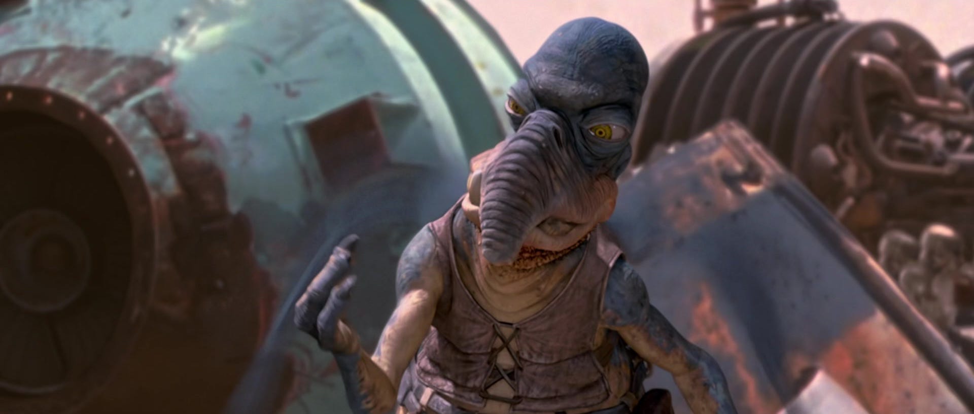 The fact that Watto is dismissive of “Republic credits” plays like a double entendre, given that Plato’s Republic is a thematic touchstone across Star Wars. In the Republic, Socrates argues that the sorts of things Watto deems to be most “real” – money and material goods – are in fact less real than immaterial things like goodness and justice. When Watto discredits the Jedi, the Force, and the Republic (a government meant to uphold ideals like justice and freedom) while insisting on something “more real,” he is revealing how small and upside-down his idea of reality is, like a person in a cave who mistakes a shadow for something with real substance.