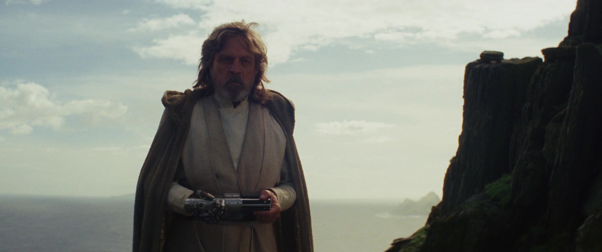 When Rey comes to Ahch-To and presents Luke with his lightsaber, asking him to come and help Leia, he uses his biological hand to throw it away, just as he did at the end of Return of the Jedi. Once again, Luke is committing himself to nonviolence – but this time, he is taking his ideals to a distorted extreme, distancing himself from the real needs of Leia and the galaxy because he is reacting out of the guilt and despair he feels over his failure with Ben. At the end of The Last Jedi, Luke finds a middle way, taking up his lightsaber to defend his sister without once using it to attack his nephew.