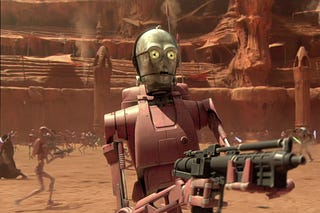 In Attack of the Clones, the second episode of the prequel trilogy, C-3PO stumbles into the Separatist droid factory on Geonosis.