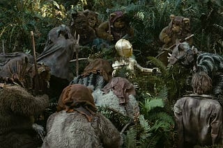 In both the first and sixth episodes of the Skywalker Saga, a Jedi uses the Force to influence a group of primitives by playing on their religious…
