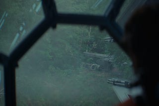 In “One Year Later” (Andor 2.1), Cassian Andor flies a stolen TIE Fighter prototype to a jungle planet to rendezvous with a fellow rebel named Porko.